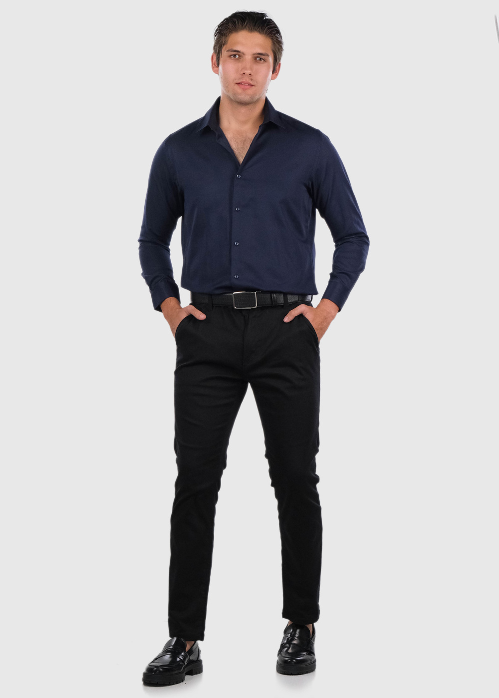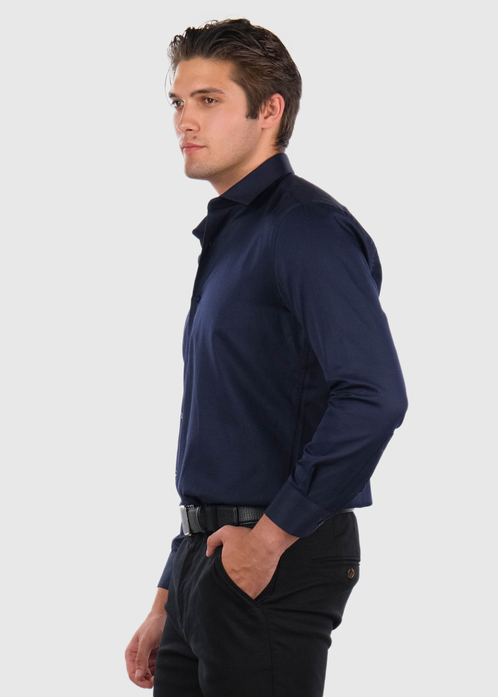 Fahd tumši zils klasiskais krekls ar garām piedurknēm