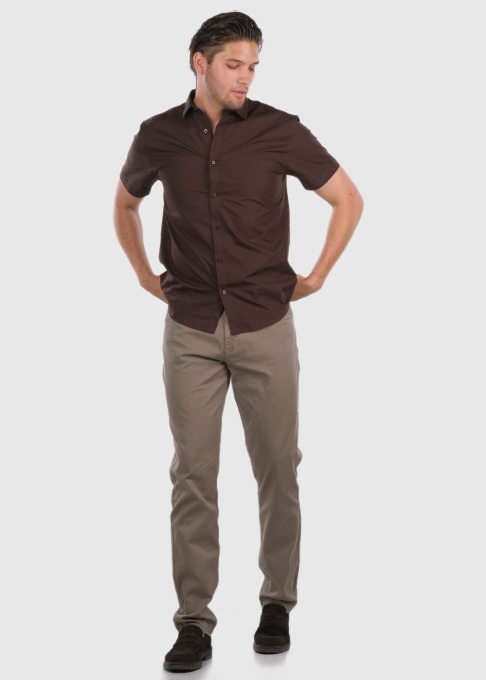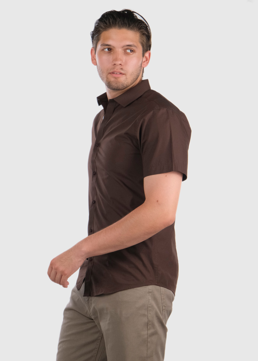 Josué Slim Fit tumši brūns krekls ar īsām piedurknēm