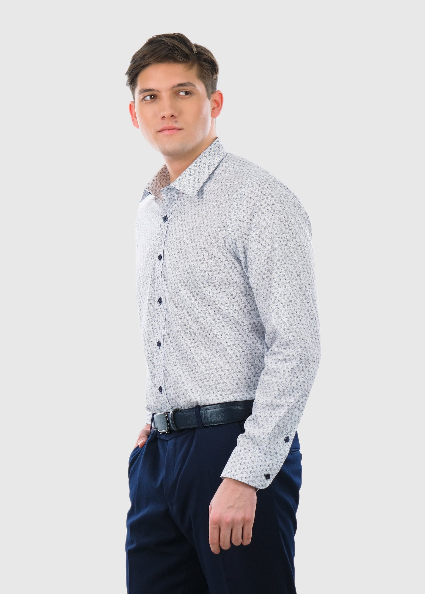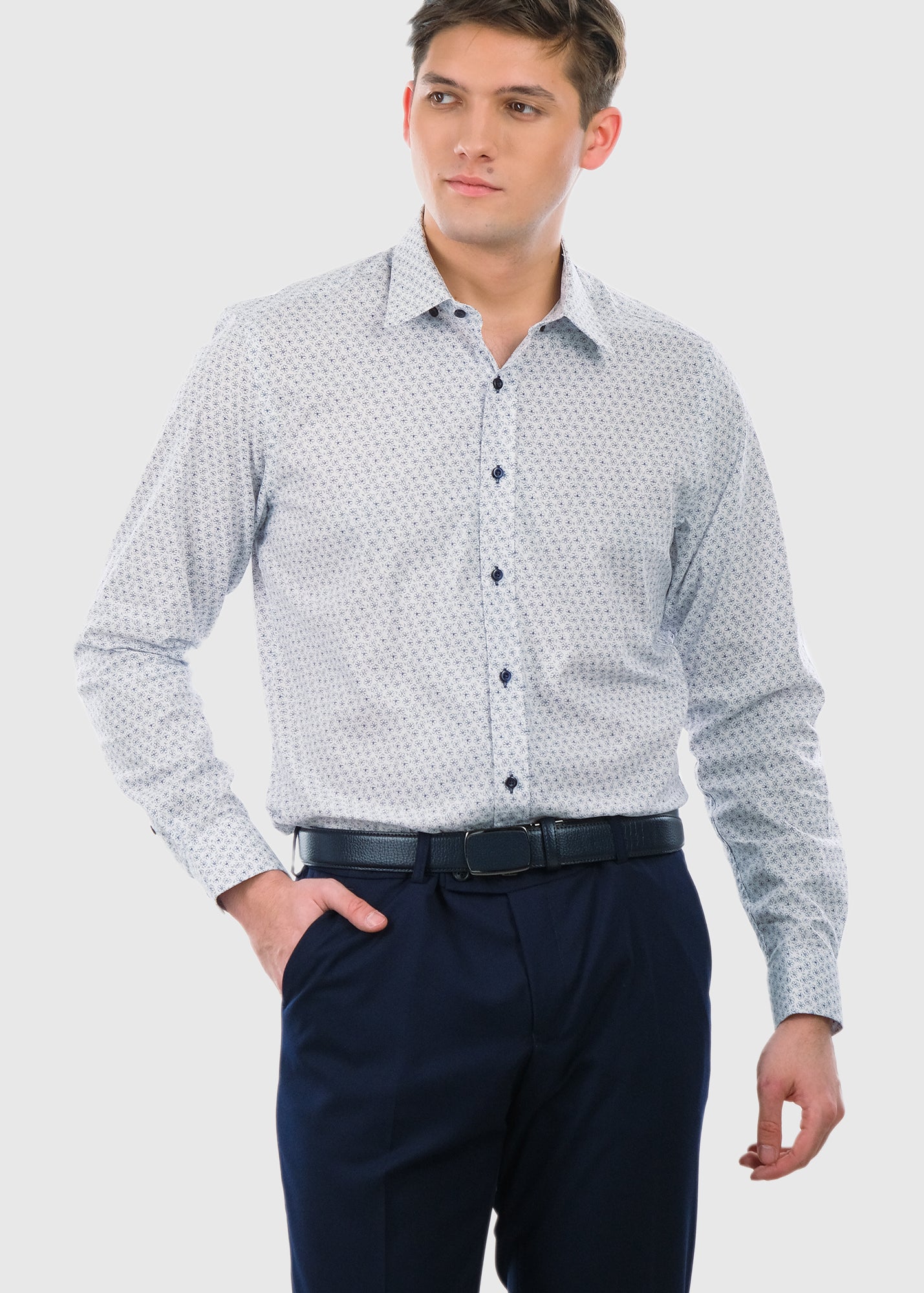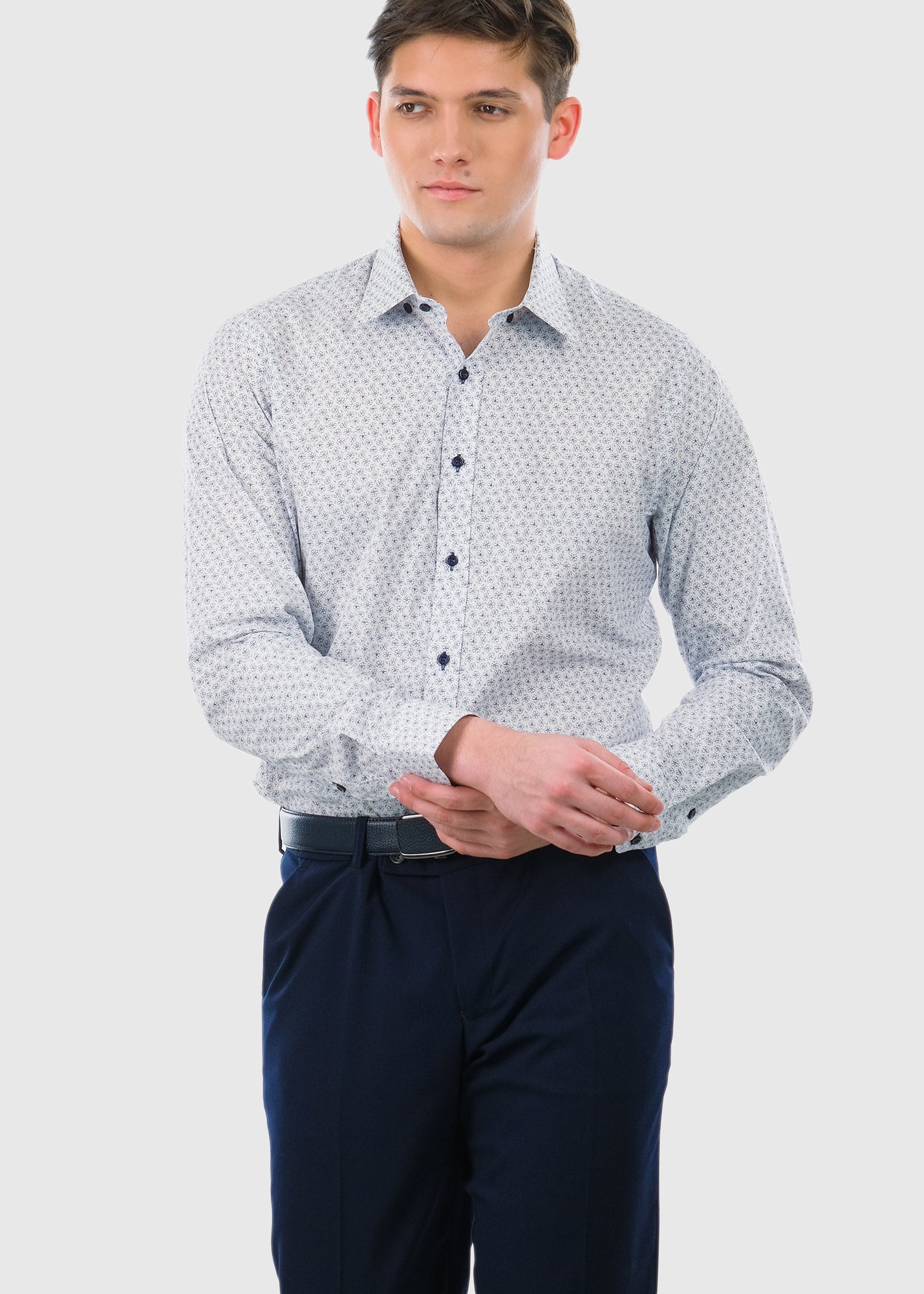 Slim Fit balts vīriešu krekls ar ziedu rakstu