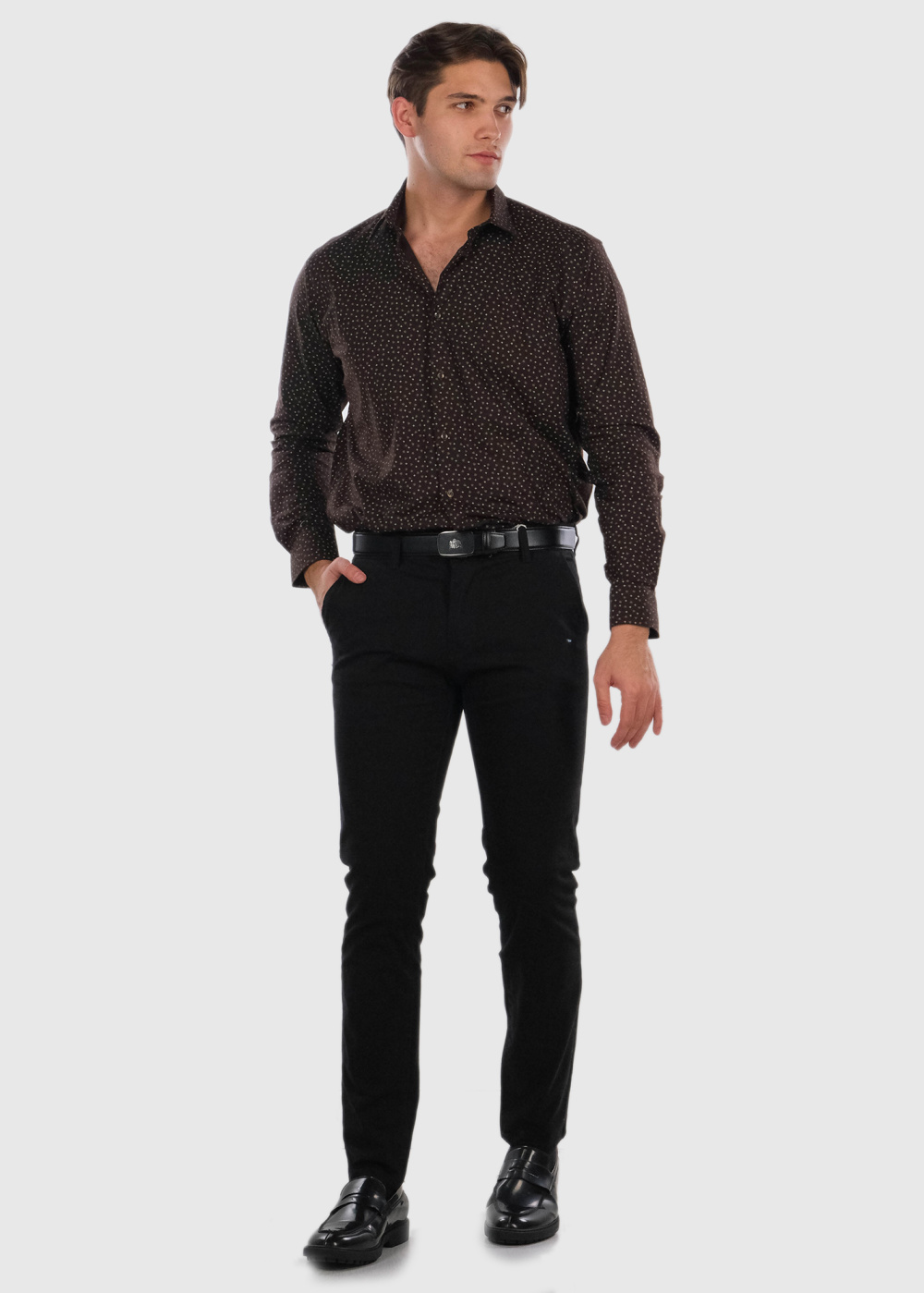 Tumši brūns pieguļošais krekls ar rakstu