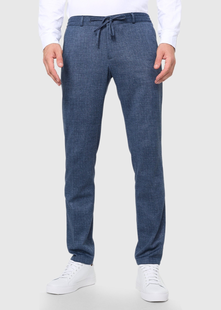 Elio Slim Fit zilas vīriešu bikses ar aukliņas aizdari