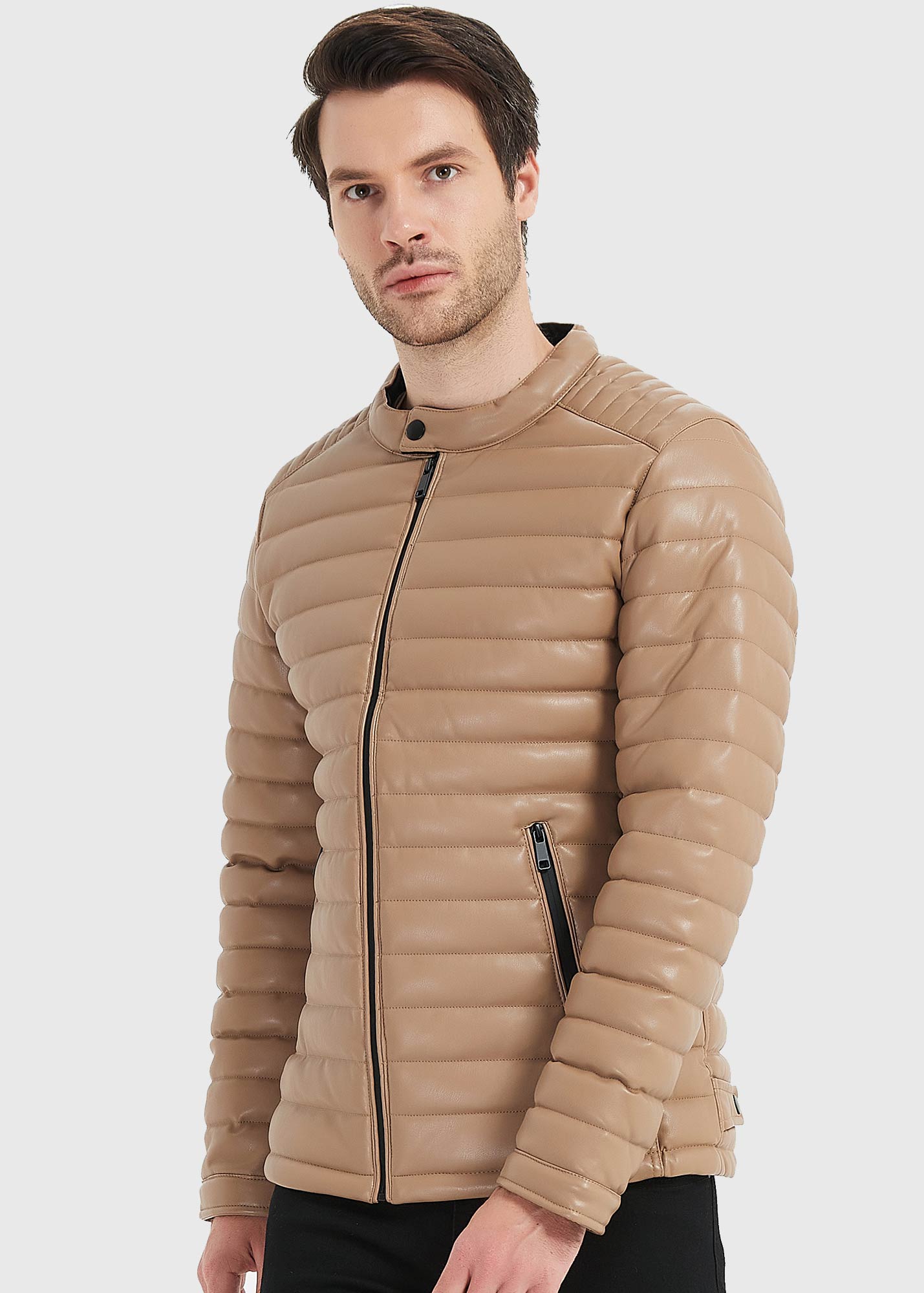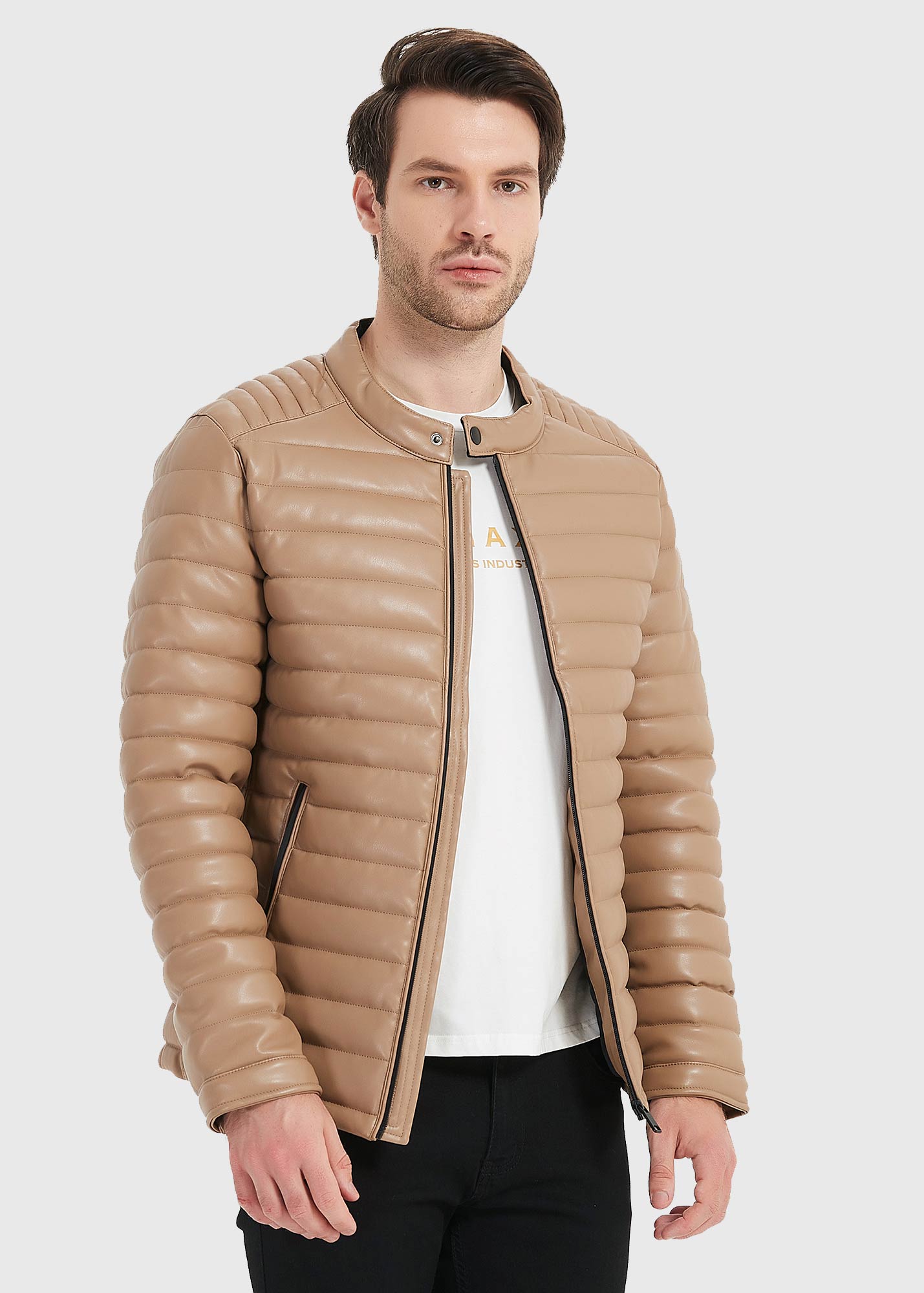 Bēša vīriešu stepēta mākslīgās ādas jaka