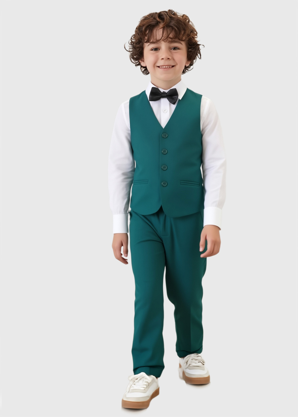 Papildus info: Bikses, žakete, krekls, veste un tauriņš iekļauta komplektā