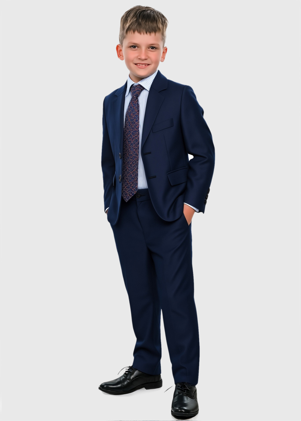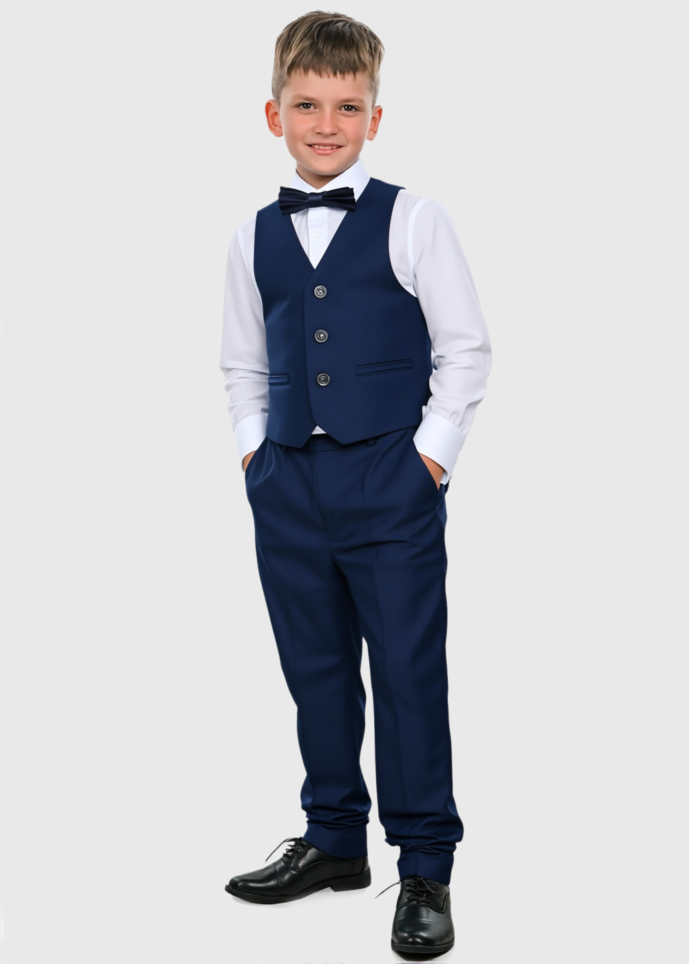Papildus info: Bikses, žakete, krekls, veste un tauriņš iekļauta komplektā