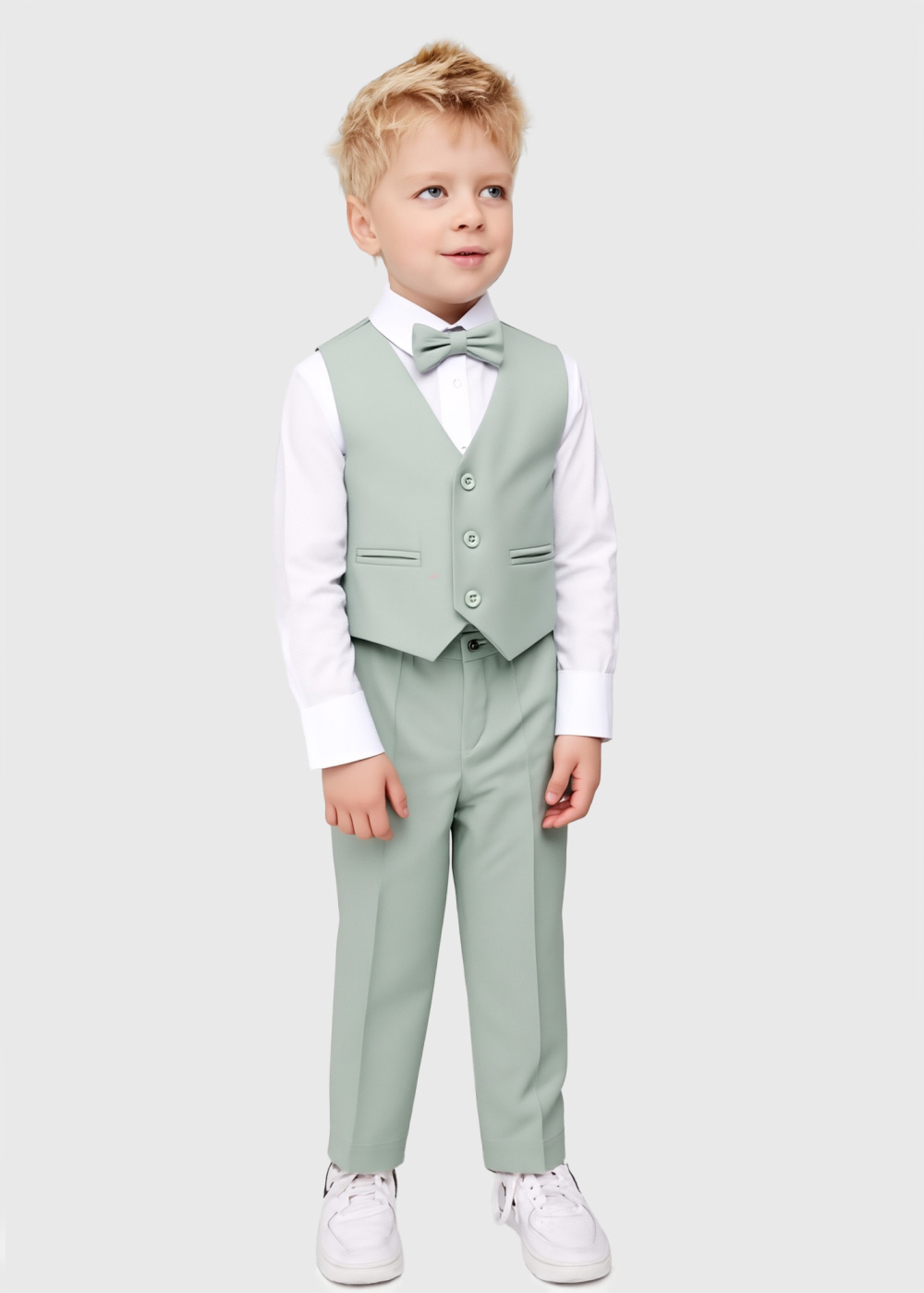 Papildus info: Bikses, žakete, krekls, veste un tauriņš iekļauta komplektā