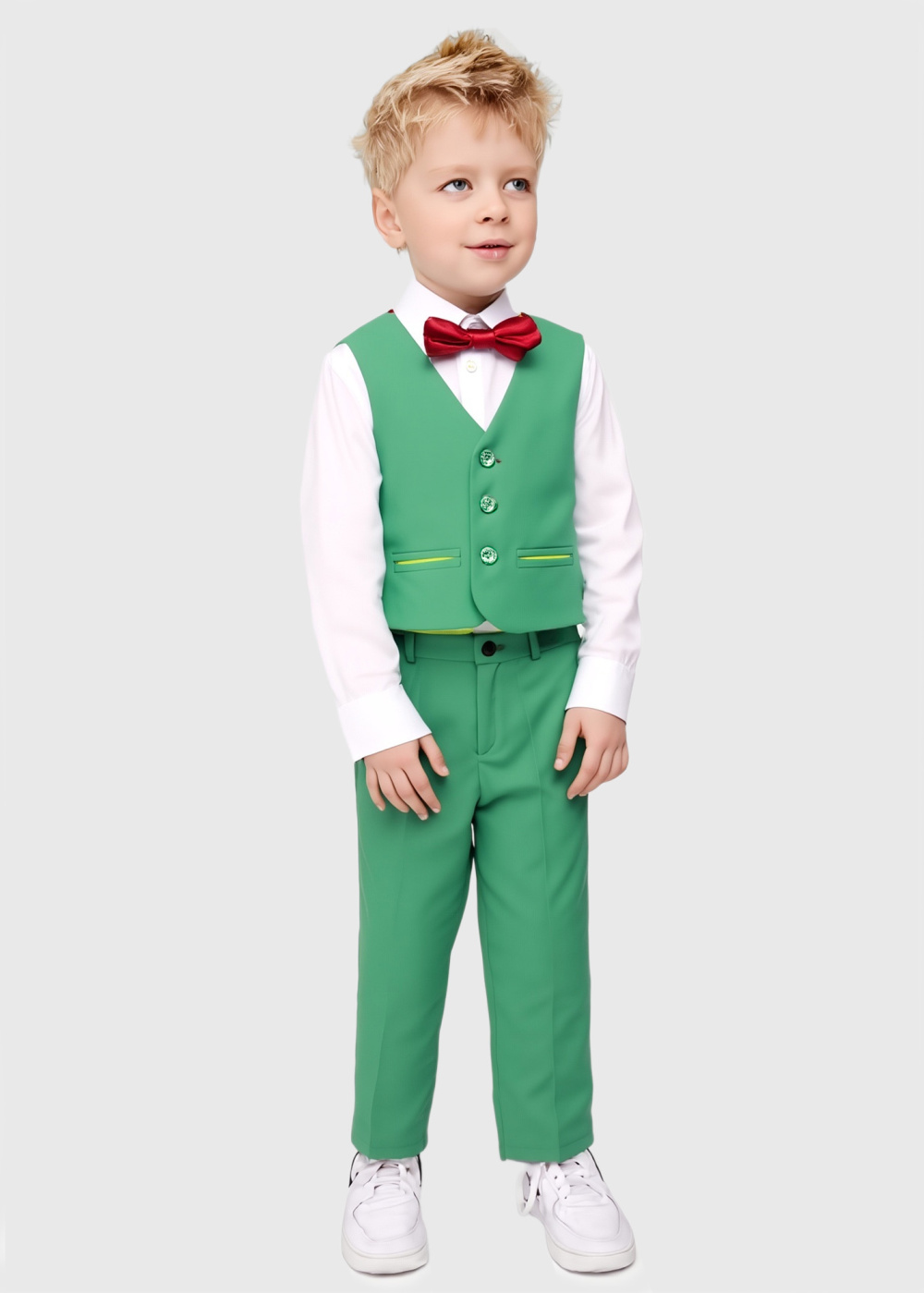 Papildus info: Bikses, žakete, krekls, veste un tauriņš iekļauta komplektā